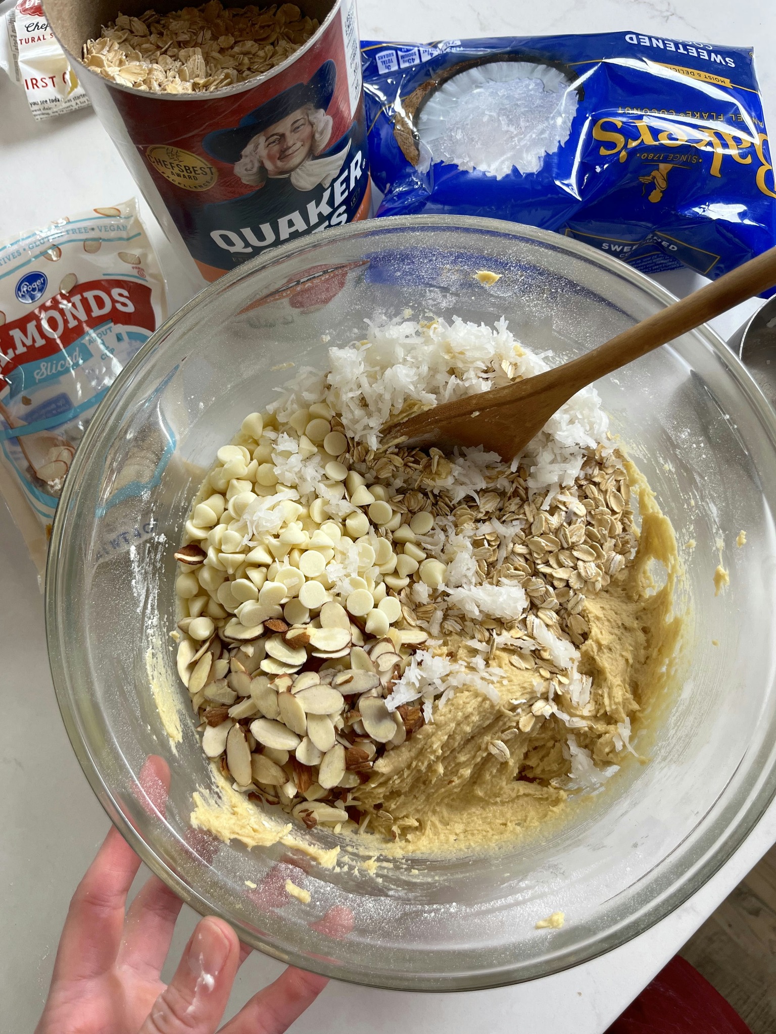 If you’re the type of person who believes cookies should be a little over the top, then these Cowgirl Cookies are calling your name. They’re everything we love about a classic, homemade cookie, but with a generous helping of goodies mixed in. With a combo of oats, almonds, coconut, and white chocolate chips, every bite is full of sweetness, crunchiness, and a little chewiness. What more could you ask for? They’re the kind of treat that you bring to a potluck and watch disappear before you’ve even set down the plate. Saddle up, and let me walk you through how they’re made…