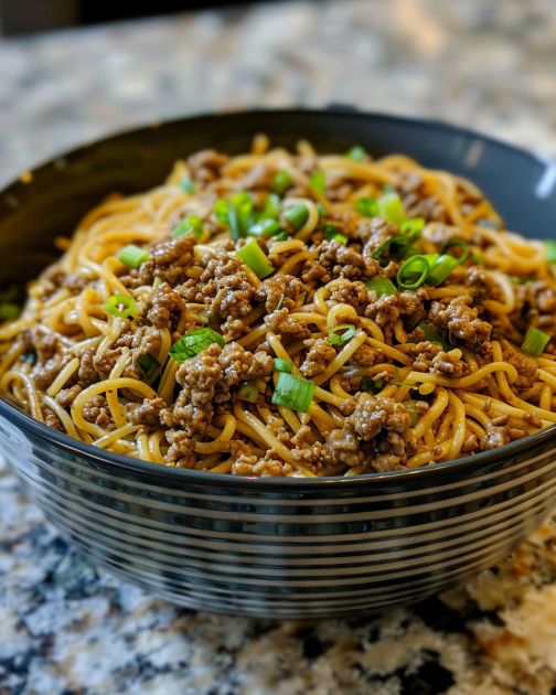 Slow Cooker Ginger Garlic Ground Beef Chow Mein