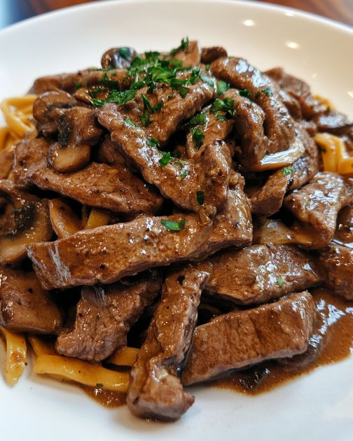 This creamy beef stroganoff pairs wonderfully with a side of buttered egg noodles, which soak up the rich sauce beautifully. For a touch of freshness, serve it alongside a simple green salad with a tangy vinaigrette. A slice of crusty bread is perfect for mopping up every last bit of the delicious sauce. If you’re in the mood for something heartier, mashed potatoes or rice can also make a great accompaniment. Don’t forget to sprinkle some fresh parsley or chives on top for a burst of color and flavor.