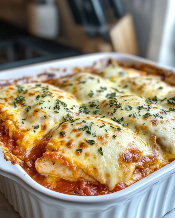 This chicken parmesan casserole pairs wonderfully with a fresh green salad tossed with a light vinaigrette, which balances out the richness of the dish. A side of garlic bread or crusty Italian loaf is perfect for sopping up the delicious marinara sauce. For a more substantial meal, consider serving with a side of buttery pasta or steamed broccoli to add a touch of color and nutrition to your plate.