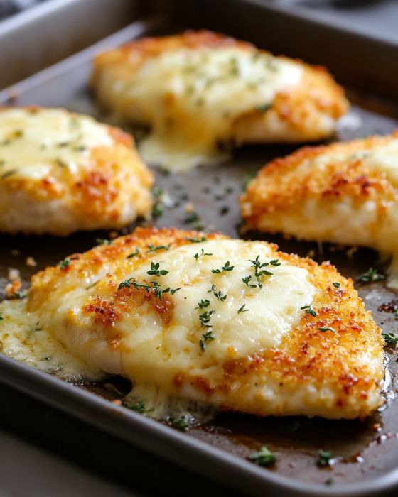 Baked Garlic Parmesan Chicken Cutlets with Melted Cheese